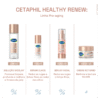 O Kit Cetaphil Healthy Renew Revitalising possui uma Loção de Limpeza anti-aging, que remove os protetores solares resistentes à água. Além disso, o Sérum oferece brilho saudável, maciez, elasticidade e firmeza. Juntos, promovem um visual impecável e profundamente cuidado.